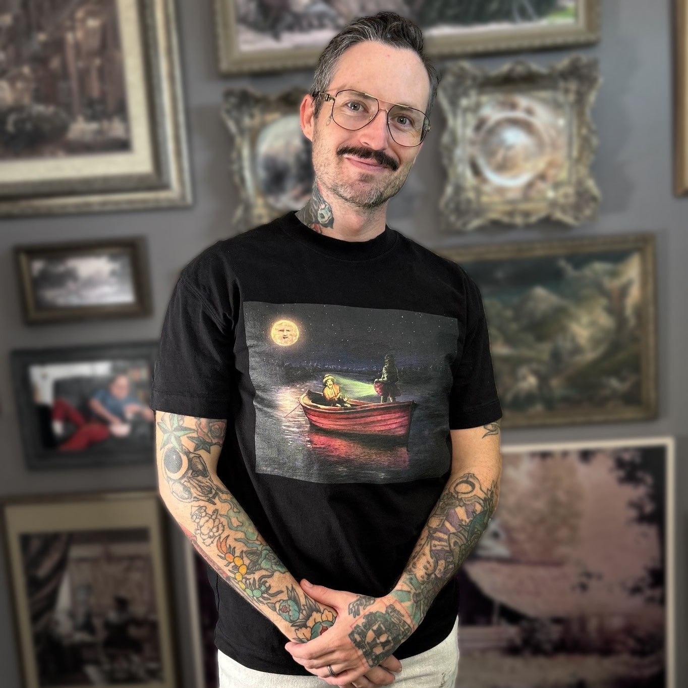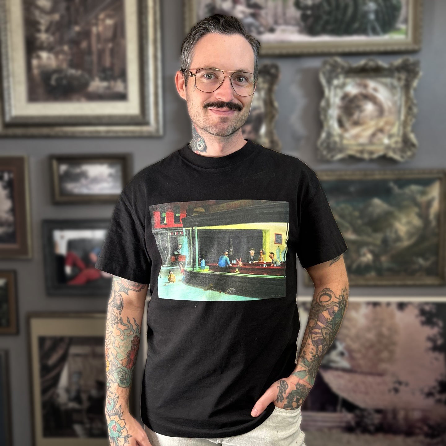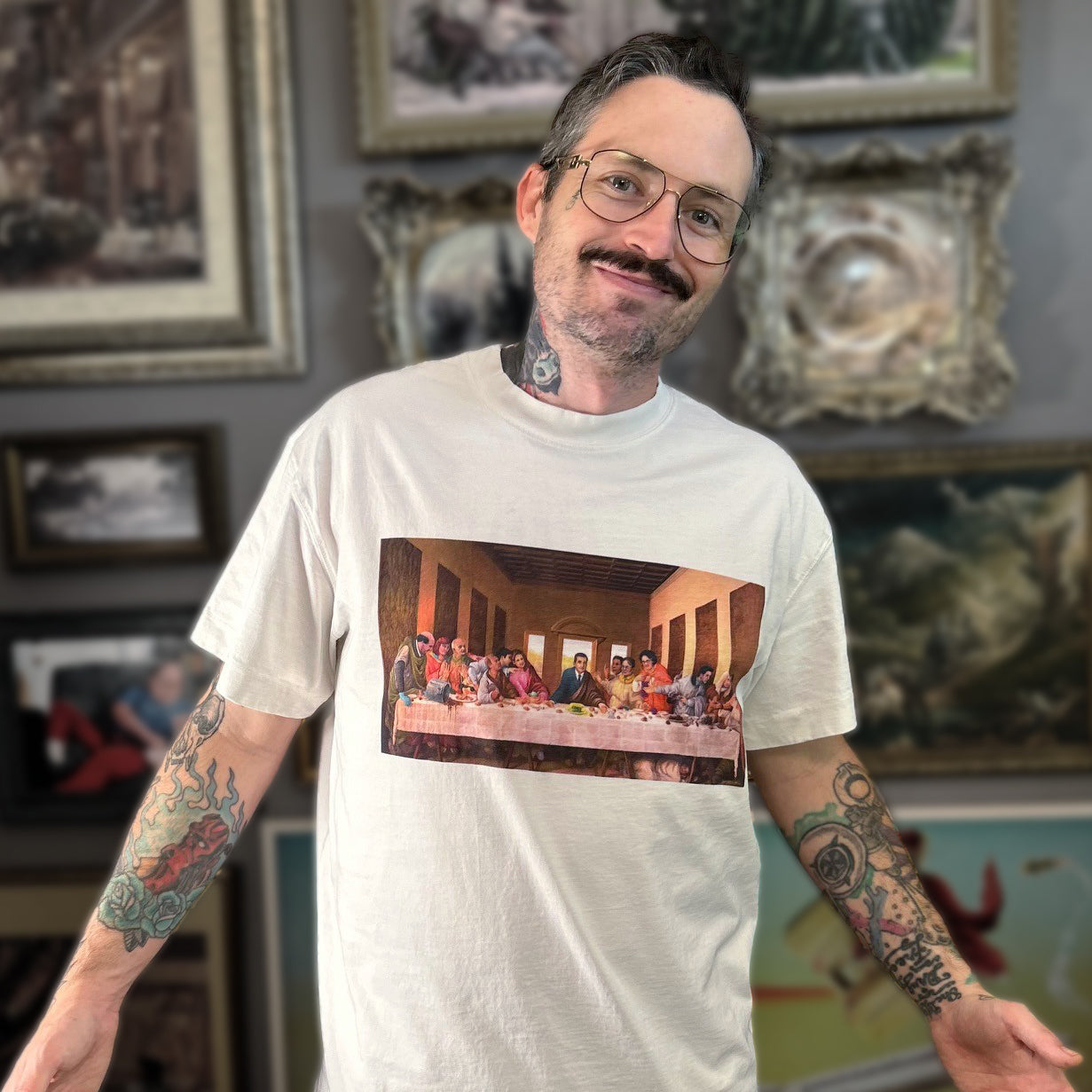 You can finally wear your favorite Downcycled painting! Be there, September 17th - 22nd for a limited time drop of 'A Classic with Cheese,' 'Make and Assessment,' and "The Last Dinner Party.' These will be vibrant, high quality collector's edition shirts that ship with certificates of authenticity. Get 'em while we've got 'em!"